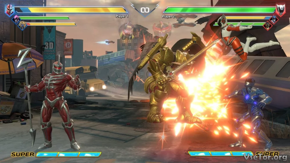 В игре вы сможете принять участие в командных битвах, сражаясь как за могучих рейнджеров, так и за злодеев. Погрузитесь в потрясающие битвы на разных аренах, от апокалиптических локаций до знакомых мест из комиксов. Деритесь, используя комбинации, разнообразные атаки и особые приемы, чтобы одержать победу.
