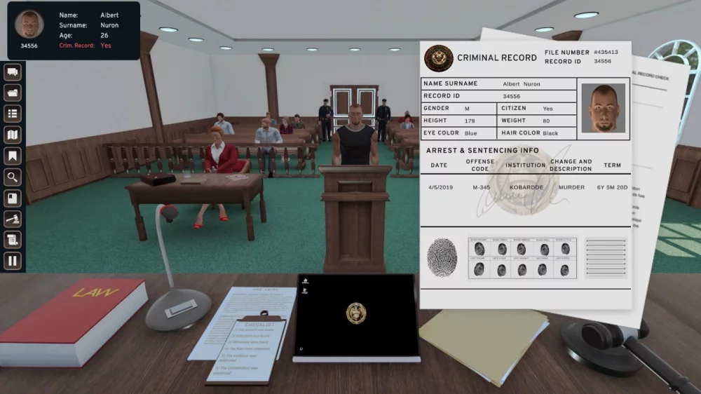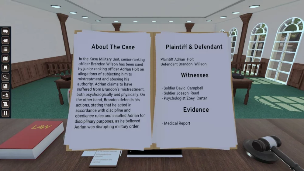 Игра You are the Judge! - симулятор судьи с элементами RPG, предлагает уникальную возможность окунуться в мир правосудия и испытать себя в роли судьи. Вы приглашены стать настоящим судебным арбитром, принимать важные решения и разрешать споры в небольшом городке Кобарде. Вас ждут различные случаи, требующие вашего вмешательства - будь то уголовное дело, гражданское или административное. Вам предстоит выяснить истину, основываясь на доказательствах и аргументах сторон.