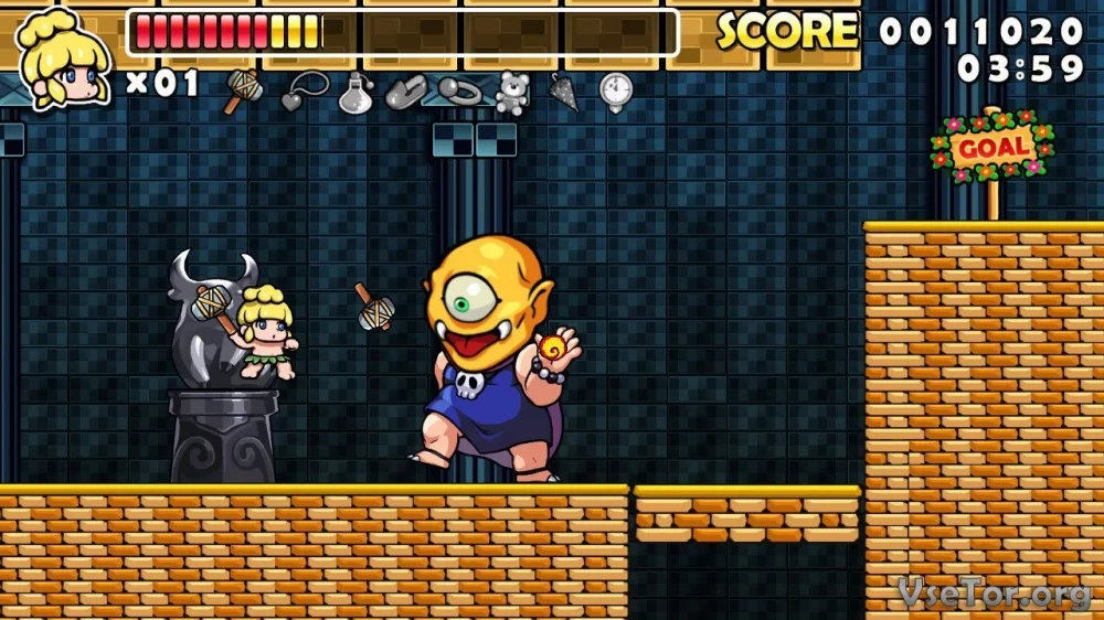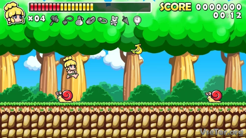 Wonder Boy Returns Remix - это игра, которая точно не даст вам скучать. Бросайтесь в бой, погрузитесь в захватывающее приключение и помогите главному герою спасти свою подругу!