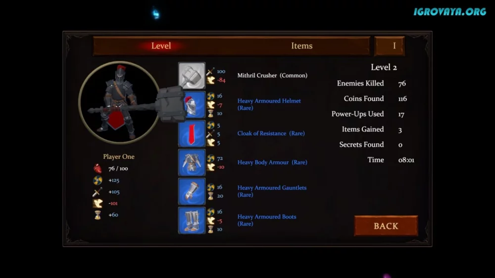 - Создавайте уникальные комбинации оружия и брони, используйте пассивные эффекты артефактов и обнаруживайте слабости врагов;