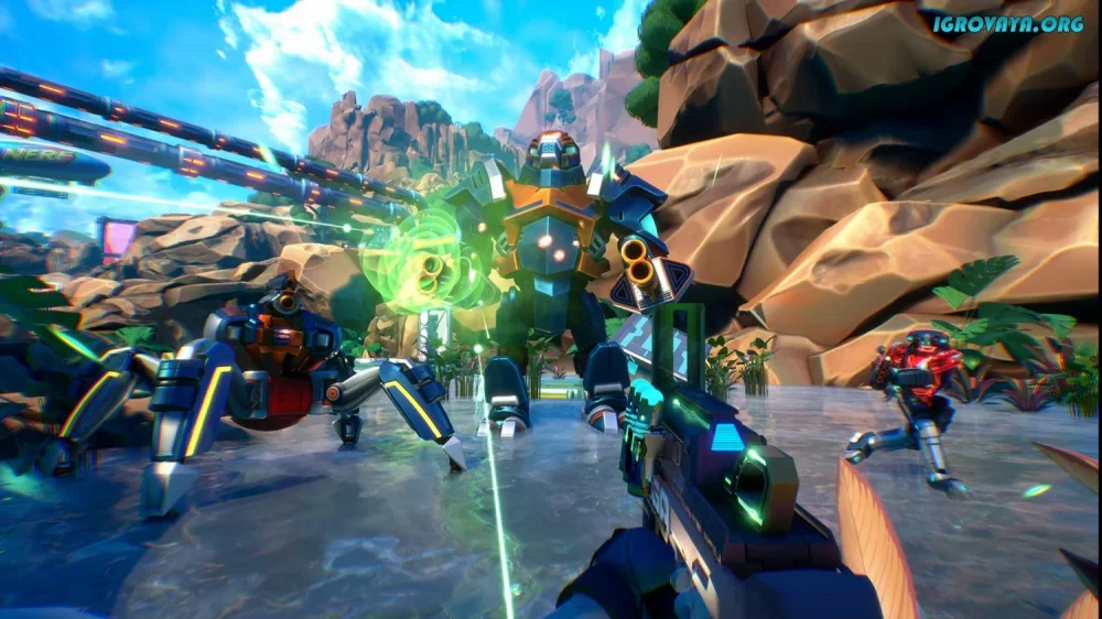 - Прокачивайте своего персонажа, улучшайте бластеры и сражайтесь за награды и бонусы.