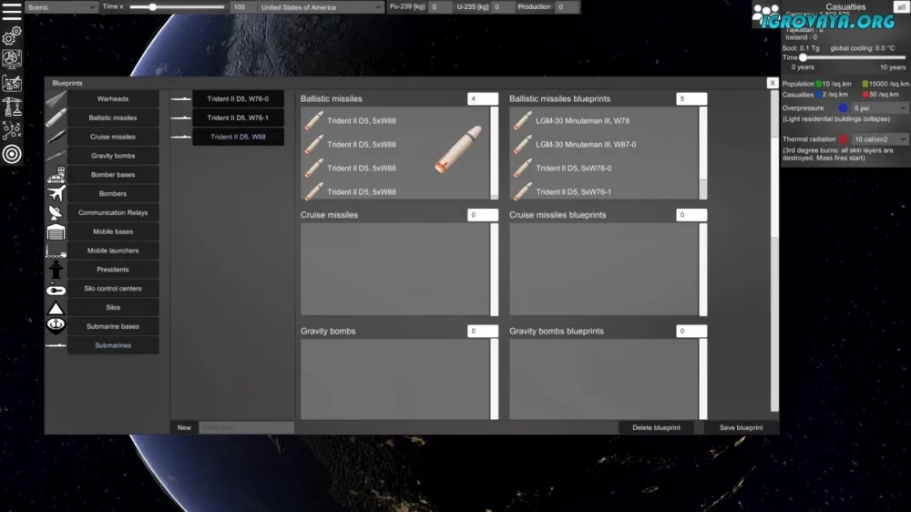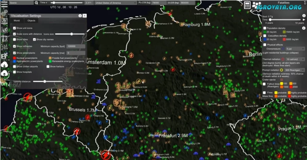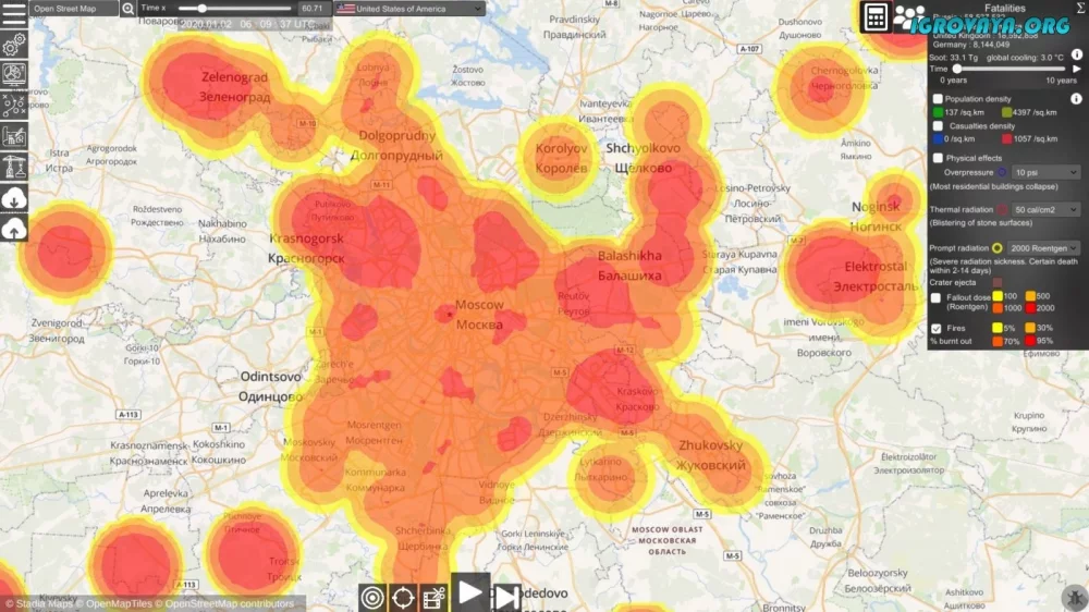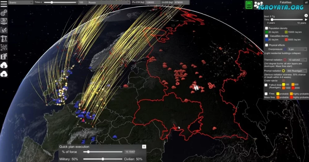 - Реалистичная симуляция ядерной войны.