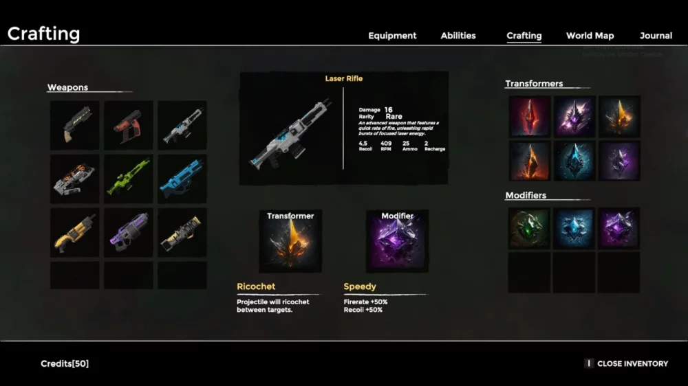 - Исследуйте мир игры, ищите материалы и модификации для улучшения навыков.