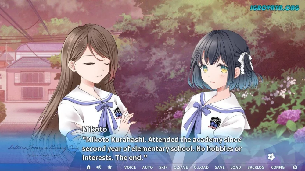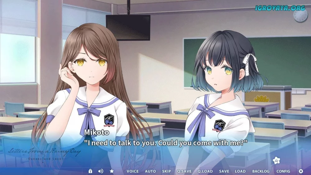 Letters From a Rainy Day - Oceans and Lace - погружает игроков в захватывающую историю, где они могут влиять на развитие событий, принимая решения и участвуя в диалогах. Почувствуйте себя частью этого увлекательного мира и помогите Микото разгадать тайны, которые скрывает школа для девочек.