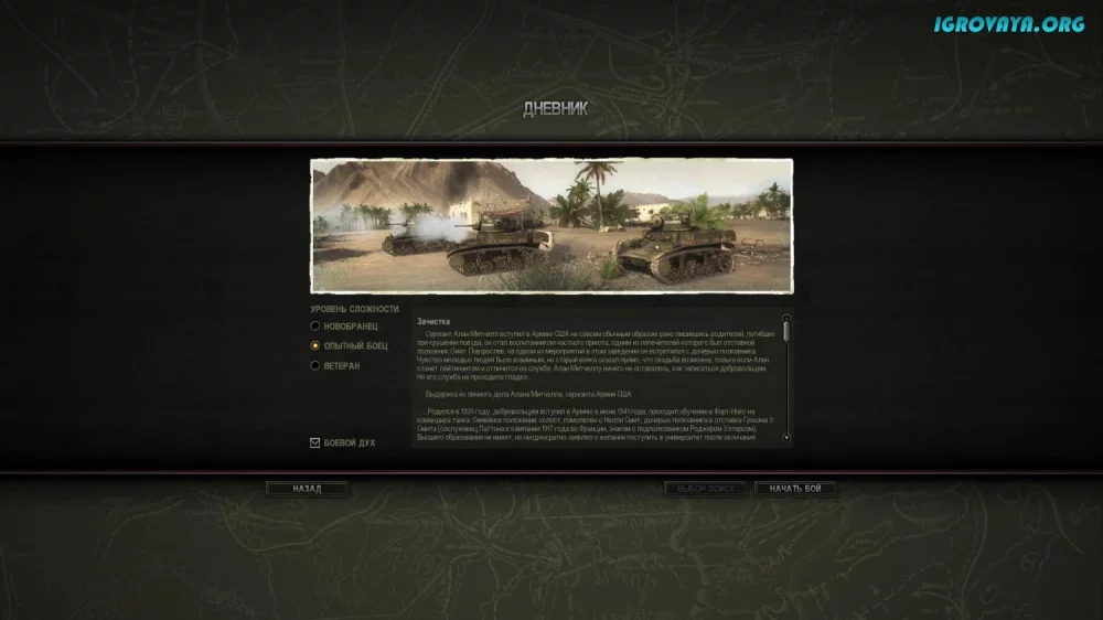- Наблюдение за происходящими событиями через глаза конкретного танка или военного.