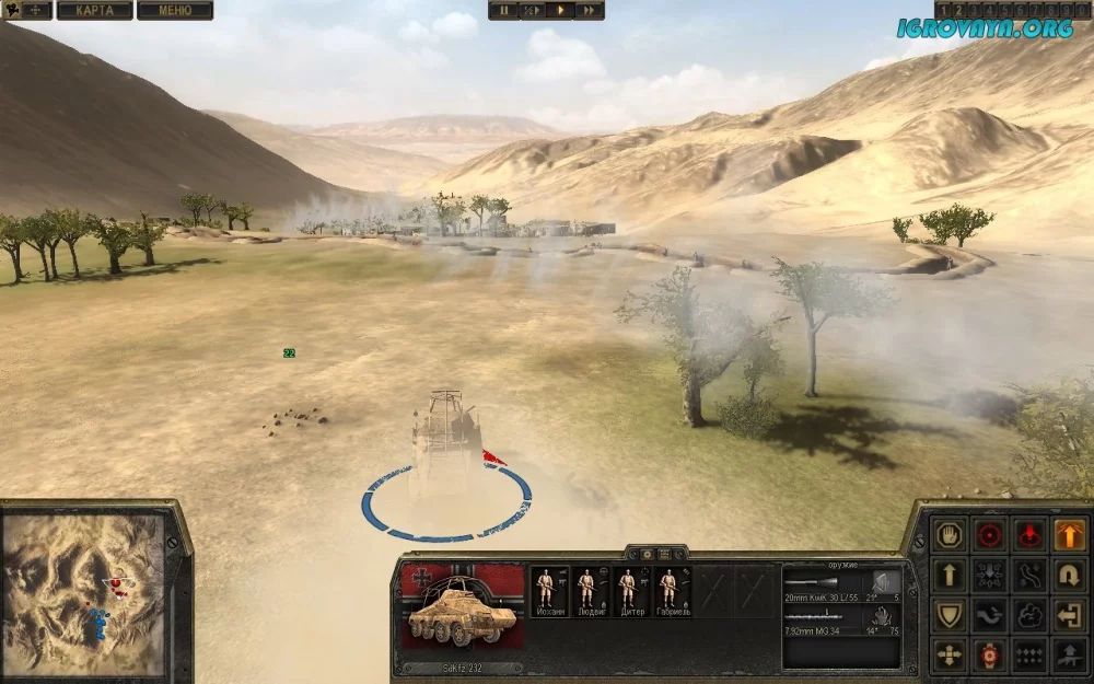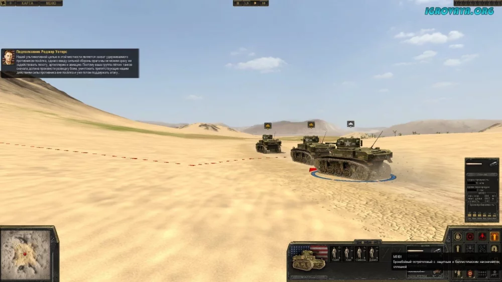 - Управление командой и выбор размещения боевой техники и солдат до начала боя.