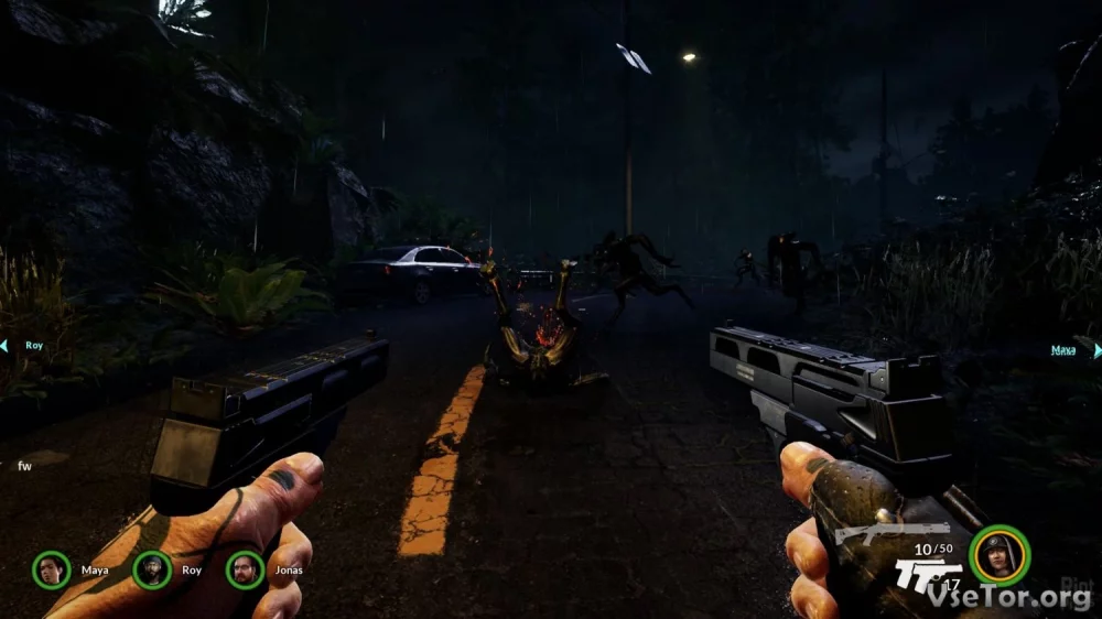 Выберите персонажа, чьи способности наиболее соответствуют вашему игровому стилю, и вступите в схватку с пришельцами. Сотрудничая с ботами или другими игроками, вам предстоит сражаться в команде, дабы одержать победу и отпугнуть врагов. Покажите, на что способны вы и ваши товарищи, и спасите человечество от ужасной судьбы!
