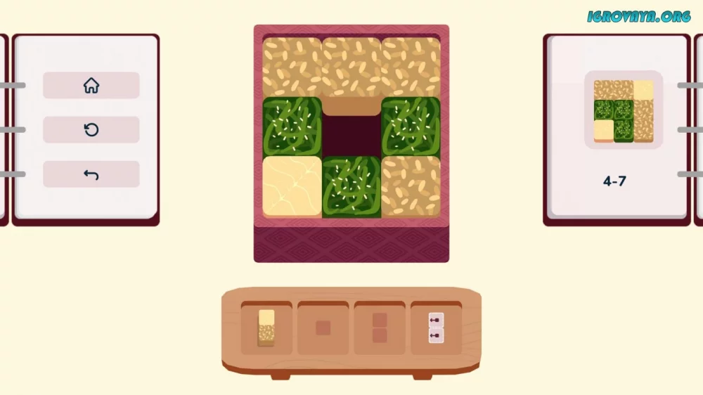 - Ингредиенты в бенто связаны между собой, поэтому вам нужно тщательно планировать каждый шаг для успешного прохождения уровня.
