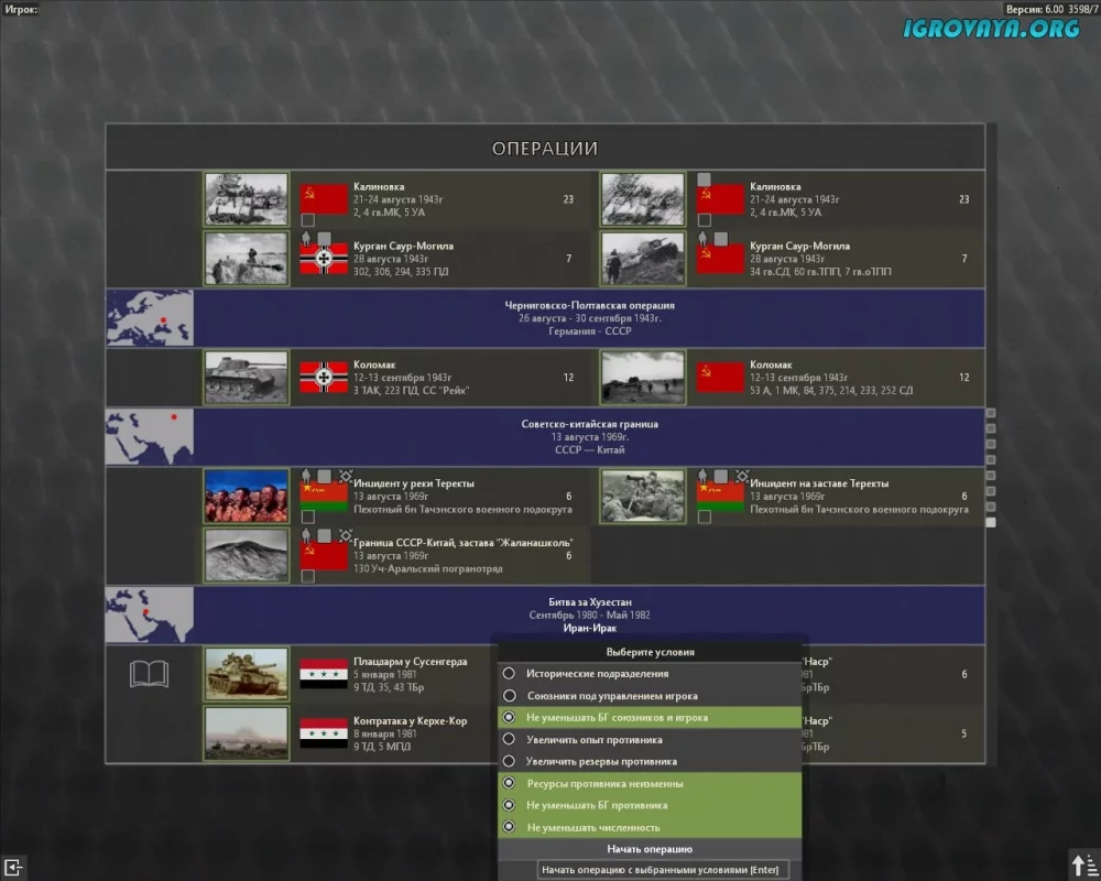 - Четыре масштабные операции, в рамках которых вам предстоит сражаться на огромных картах и командовать батальонами танков.