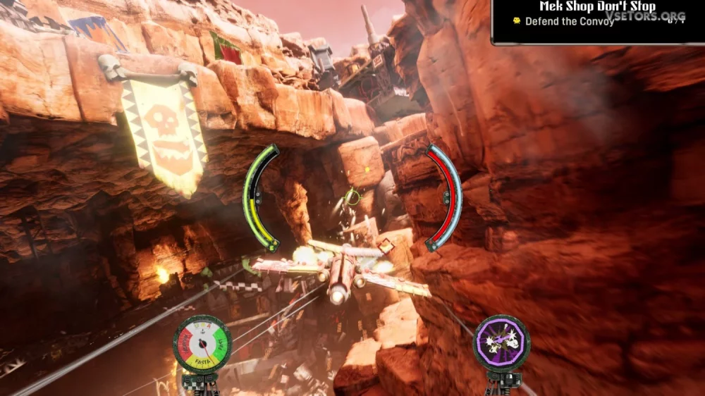 Warhammer 40,000: Dakka Squadron - Flyboyz Edition предлагает стандартный геймплей авиационного шутера: берите под контроль орка, выполняйте миссии, сражайтесь с врагами и развивайте свой истребитель. Однако благодаря уникальному стилю и атмосфере игры, каждый бой станет захватывающим приключением в мире Черного Культа.