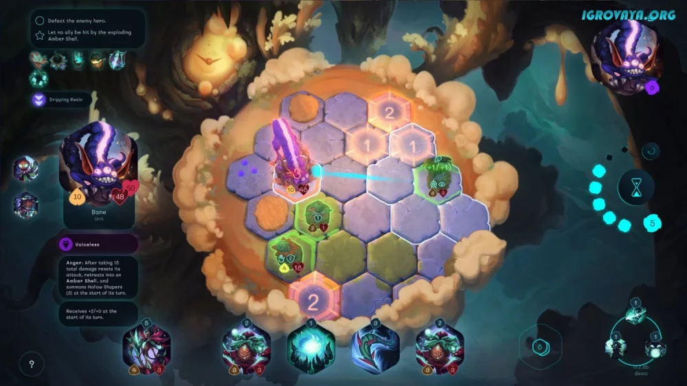 Сражения в игре проходят в пошаговом режиме: сначала вы перемещаете своих персонажей по шестиугольной карте, а затем делаете ход противник. Не забывайте следить за видом вашего героя, чтобы использовать свои тактические преимущества в бою. Кроме того, вы можете использовать карты для призыва духов на свою сторону, каждый из которых обладает уникальными способностями.