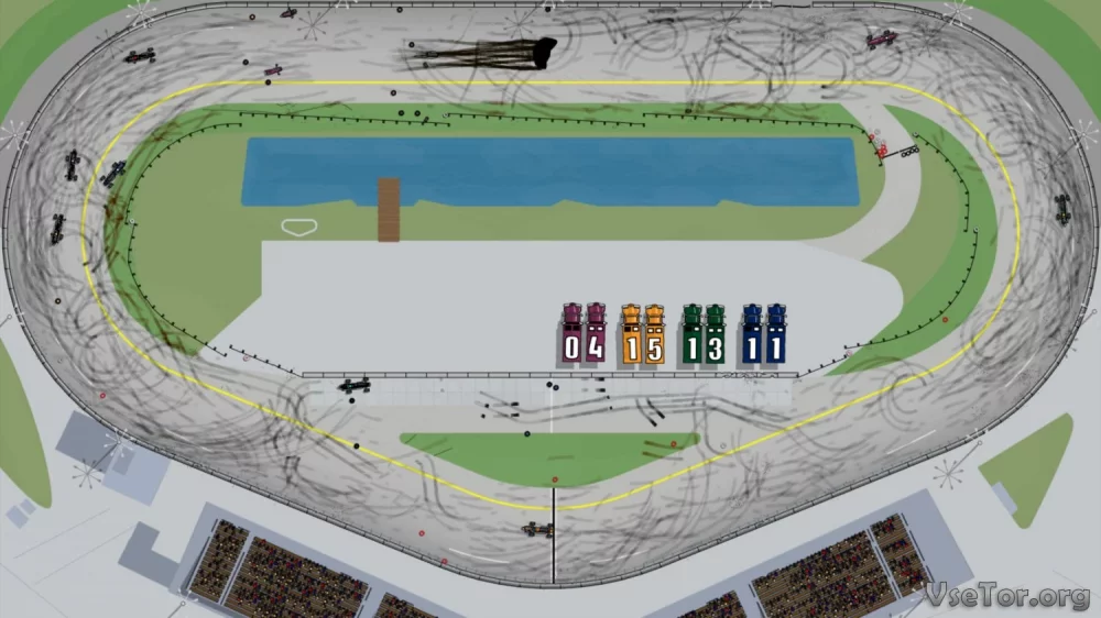 - Уникальная физика геймплея, которая делает гонки на трассе захватывающими и непредсказуемыми. Никакие детали автомобилей не пропадают после аварии, они остаются на трассе и создают опасности для гонщиков.
