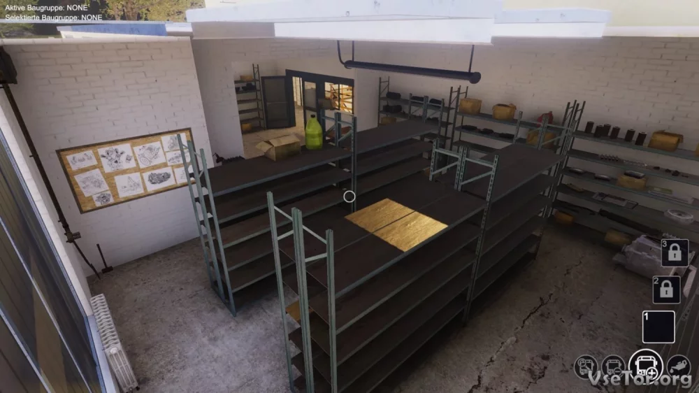 - Исследование гаража, поиск инструментов, запуск устройств;