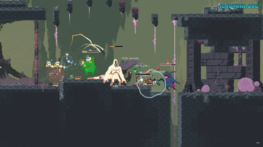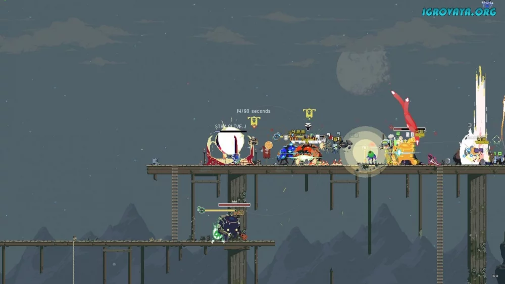Risk of Rain Returns — это удивительный пиксельный экшен-рогалик, который открывает перед игроками захватывающий мир Петрикор V. Это мистическое место, наполненное опасными монстрами и таинственными созданиями, собравшимися здесь со всех уголков галактики. Вы попадаете в это место благодаря невиданным силам и должны сразиться за свою жизнь, чтобы добраться до космического корабля и вернуться домой.