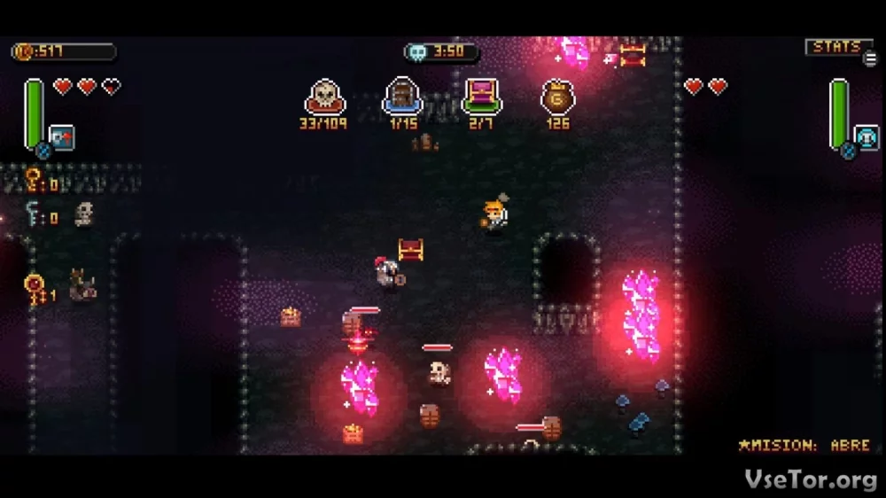 - Исследуйте процедурно генерируемые подземелья, где каждый уровень предлагает новые вызовы и секреты.
