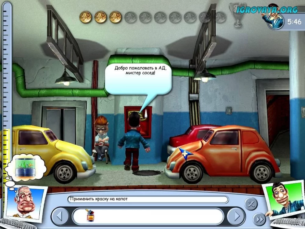 - Не стоит пересекаться с начальником-соседом, следите за его мыслями и создавайте хаос, чтобы заработать больше очков.
