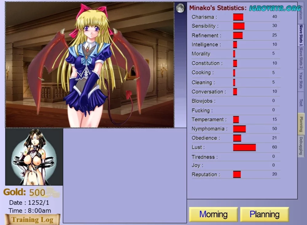 В игре вы сможете насладиться разнообразными сценами обучения и сексуальными моментами, что придаст игровому процессу дополнительную пикантность. Не забывайте, что вам придется расставаться с рабынями, отправляя их к клиентам, и начинать обучение новых девушек.