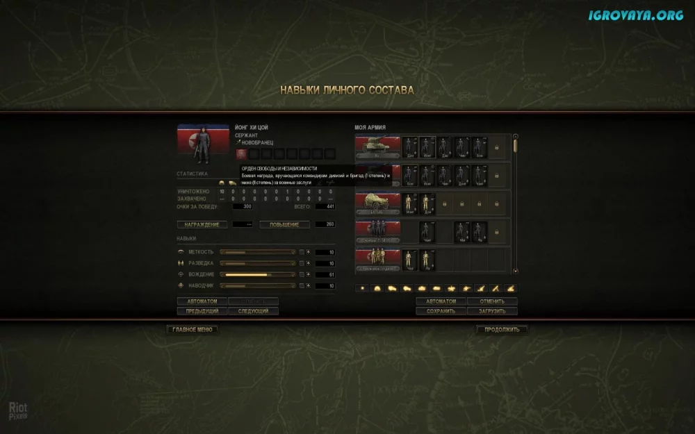 - Возможность управлять каждым военным индивидуально, изучая территорию и лутая ресурсы.