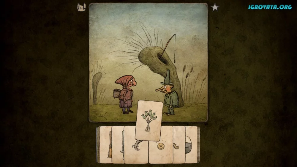 Хотя сюжет игры остается загадкой, вам предстоит исследовать мир пилигримов, сталкиваясь с различными вызовами и заданиями. Один из ключевых элементов геймплея – это карточная механика, позволяющая вам принимать решения и влиять на ход событий.