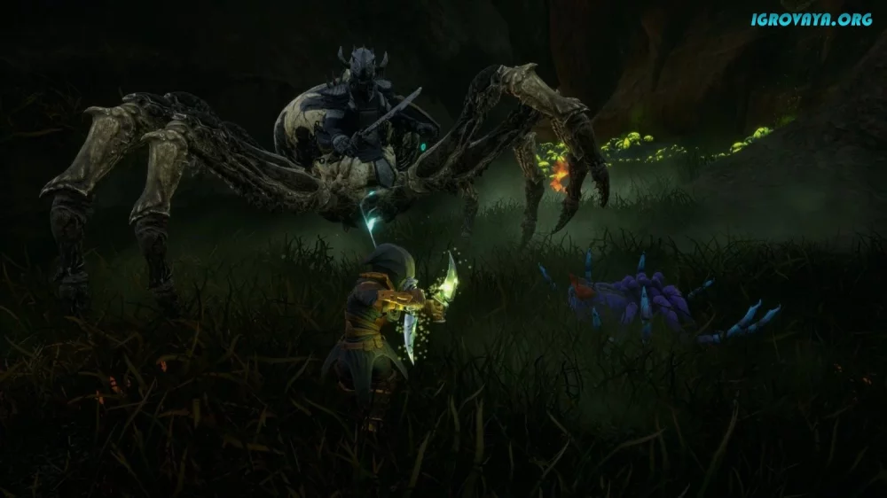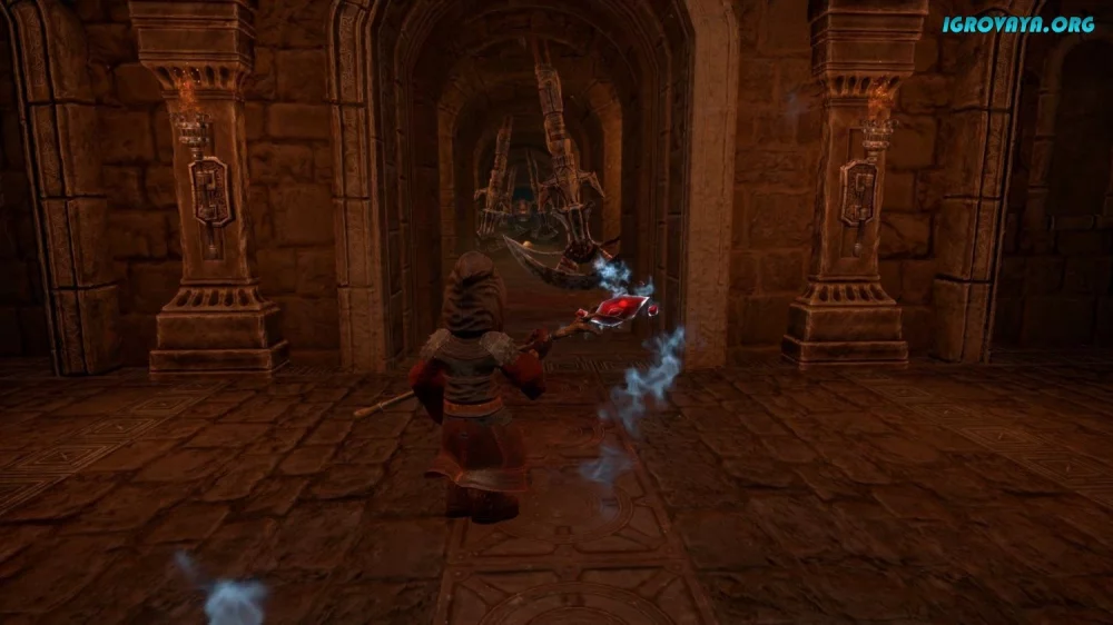 - Сразитесь с разнообразными врагами, готовьте оружие и заклинания, ищите лут и улучшения для своего персонажа.