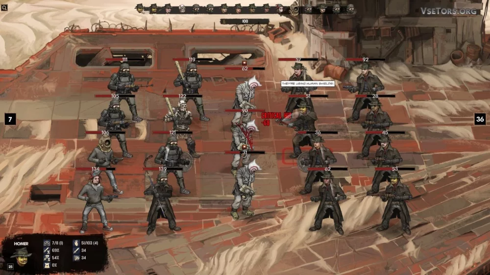 - Сражайтесь с врагами и наемниками, обдумывая каждый ход и избегая ошибок, которые могут обернуться гибелью.