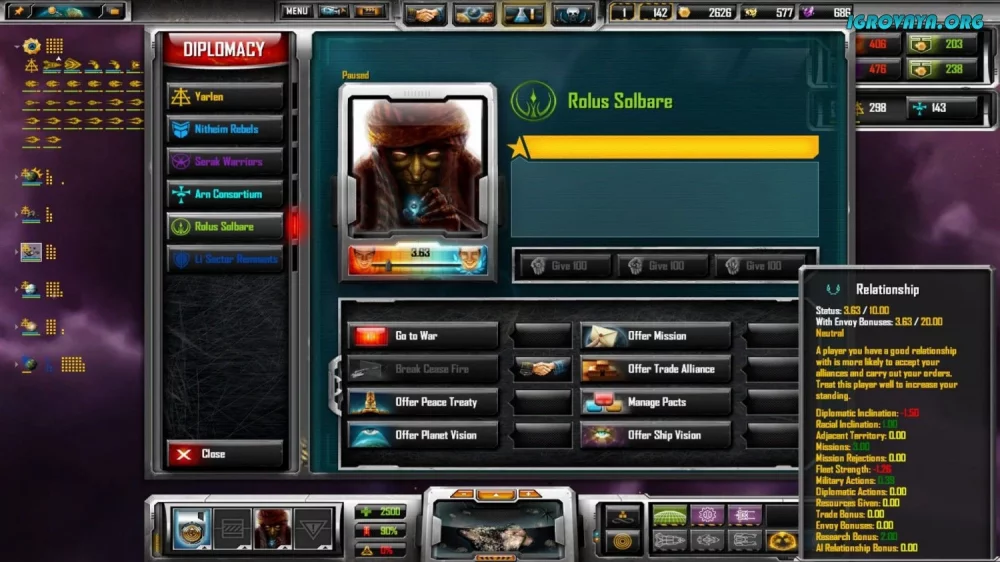 - Галактическая война на пике напряжения, враги атакуют со всех сторон, и только вы способны остановить этот хаос. Но помимо боев, вам предстоит заботиться о своем народе, развивать экономику, технологии и дипломатию. Вы – не просто военачальник, вы – лидер.