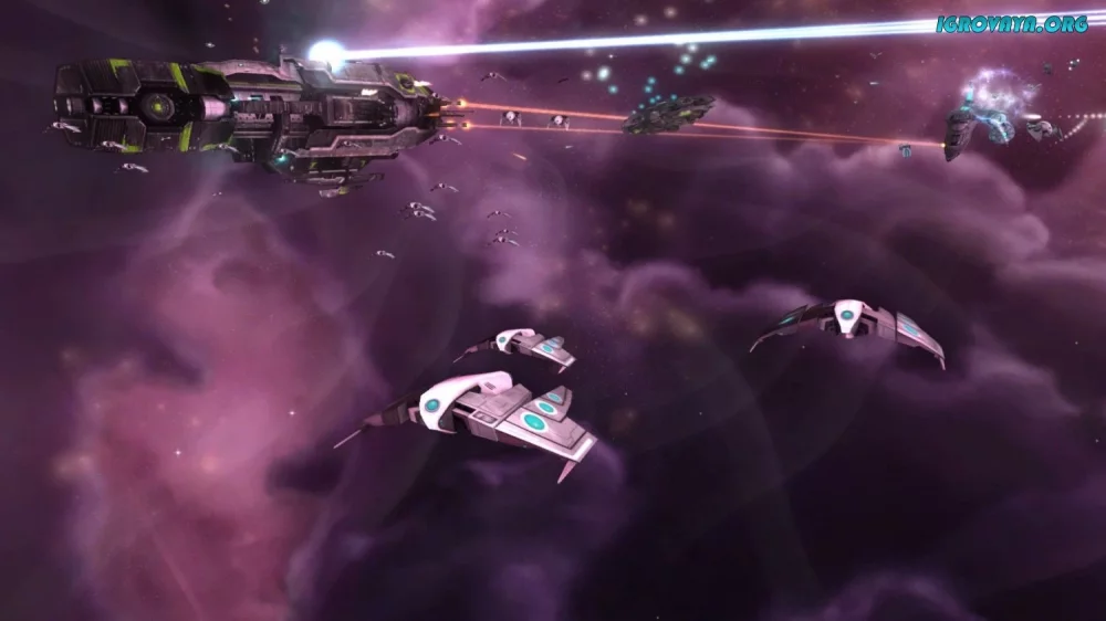 - Окунитесь в эпические битвы, в которых участвуют тысячи боевых единиц одновременно. Это не просто сражения – это настоящие космические побоища с потрясающими спецэффектами и взрывами.