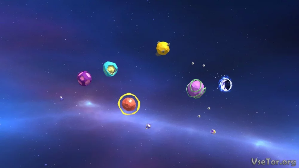 - Управляйте звездолетом и стремитесь попасть в портал, чтобы перенестись в другое место;