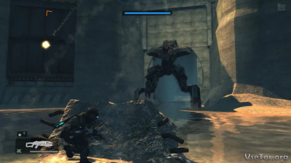 - Перестрелки предлагают стандартный набор механик с использованием укрытий, гаджетов и футуристического вооружения.