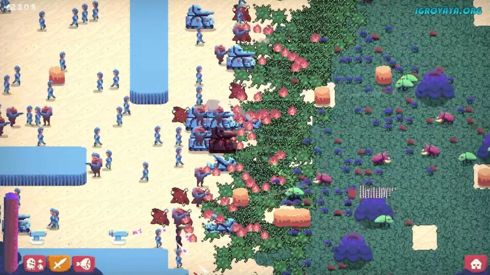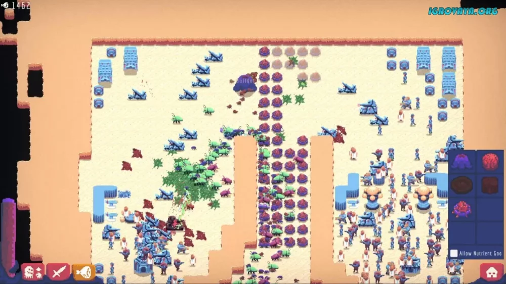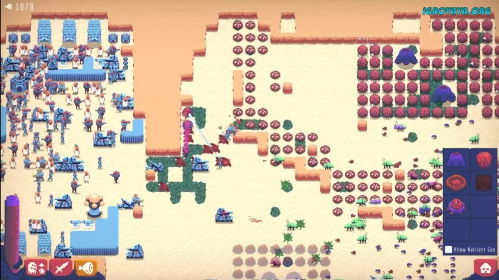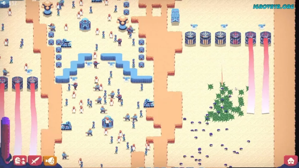 Игра Buggos - захватывающая стратегия в реальном времени, где вам предстоит управлять роем мутировавших жуков и сразиться с жителями-людьми за контроль над планетой. Будьте готовы к безжалостным битвам, настройте свои колонии и противостоять захватчикам, чтобы защитить то, что принадлежит вам по праву!