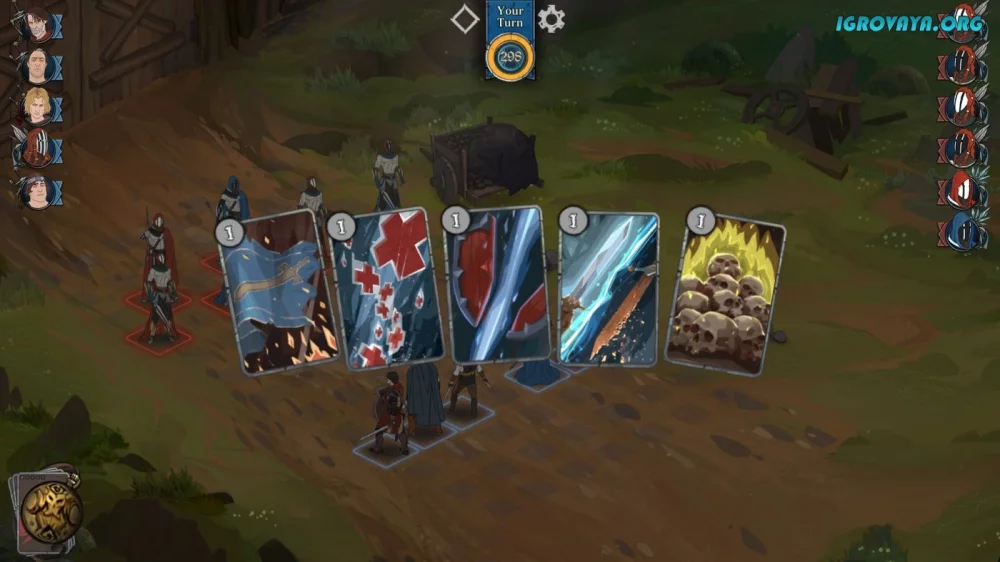 Игра предлагает игроку исследовать мир и сражаться с различными группами противников. Для начала вам потребуется собрать отряд и приобрести опыт. Вы можете выбирать между различными классами, такими как Храмовник, Мечник, Убийца, Колдун, и другие, каждый из которых обладает своими уникальными способностями. Однако победу в сражениях определит не только ваш навык, но и ваша умелая стратегия при использовании карт и заклинаний.
