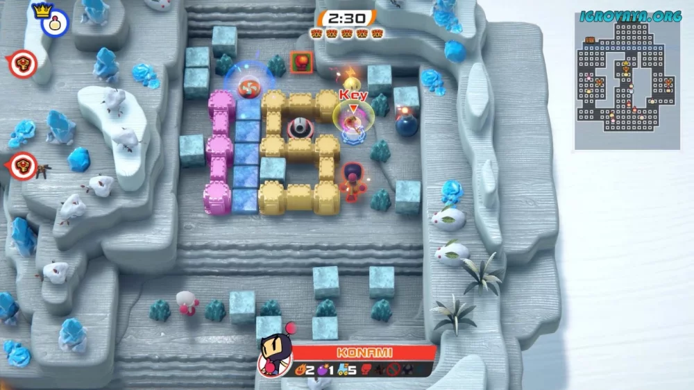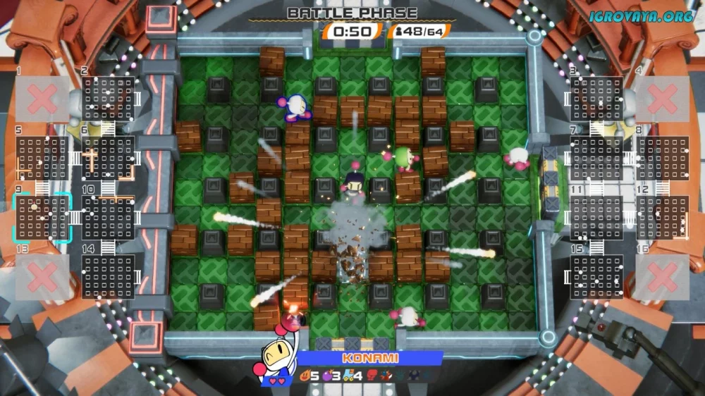Загрузите SUPER BOMBERMAN R 2 торрент прямо сейчас и создайте свое лобби для игры с друзьями или присоединитесь к играм других игроков. Оттачивайте свое мастерство, сражайтесь за кристаллы и очки в режиме Гран-при, участвуйте в масштабных битвах 64 игроков в режиме Королевской Битвы-64 или отстаивайте крепость в режиме Защиты Башни.