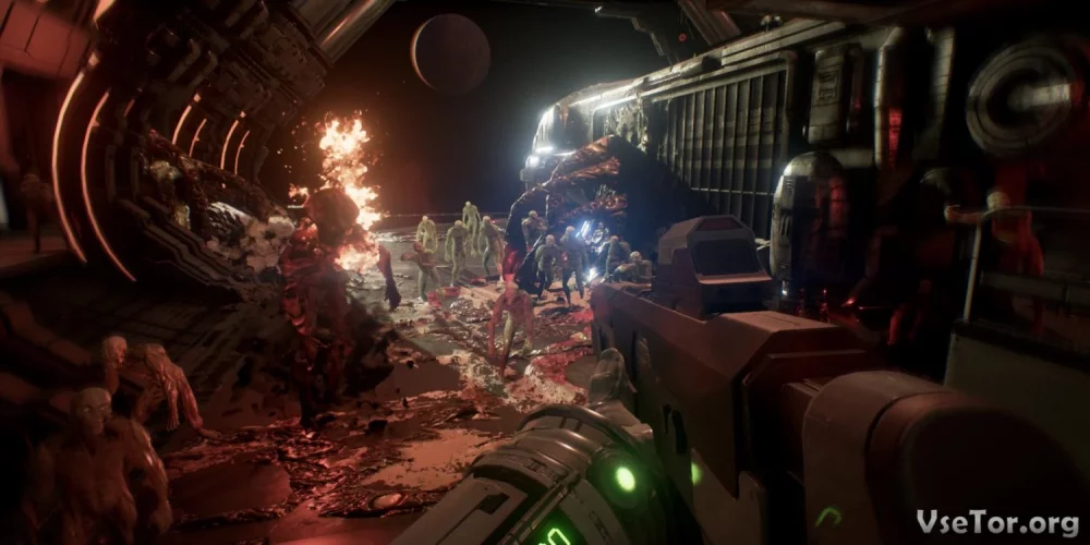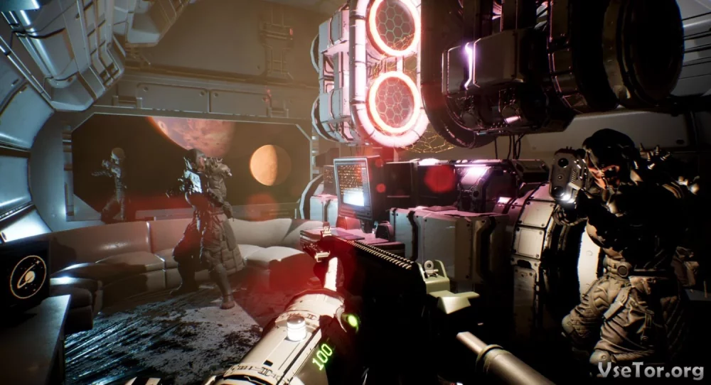 - Сражения с инопланетными угрозами как на планетах, так и на корабле.
