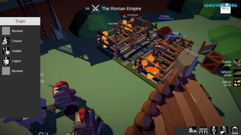 - Добыча ресурсов, строительство зданий и улучшение их функционала.