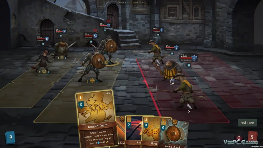 Каждое пошаговое сражение в Banners of Ruin будет проверкой вашей стратегической обдуманности. Одно неверное действие может стоить жизни вашему герою, а каждый умелый ход приблизит вас к победе. Не унывайте, если один из ваших бойцов падет - вас ждет множество других персонажей, готовых встать на защиту Черных Лап.