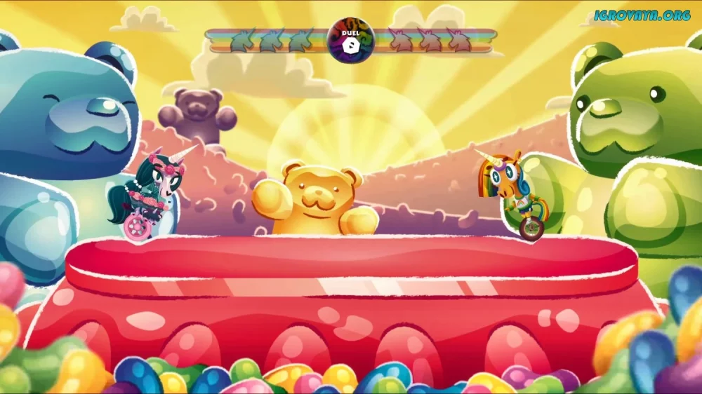 Unicorns on Unicycles – захватывающее приключение в жанре файтинга, где вы окажетесь в роли единорога и сразитесь в радужных кровавых битвах…