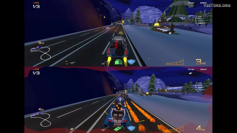 Более двадцати треков ждут вас в этой игре, каждый из которых предлагает свои уникальные вызовы и препятствия. Преодолевайте препятствия, вступайте в перестрелки с соперниками и докажите, что вы лучший гонщик и боец на дороге.