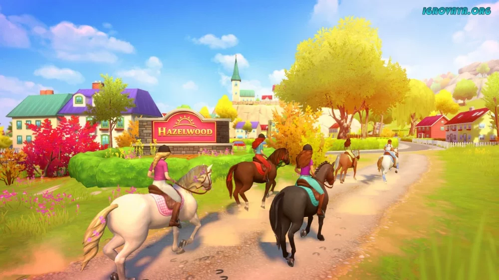- Исследуйте красочные пейзажи и окрестности на верном скакуне;