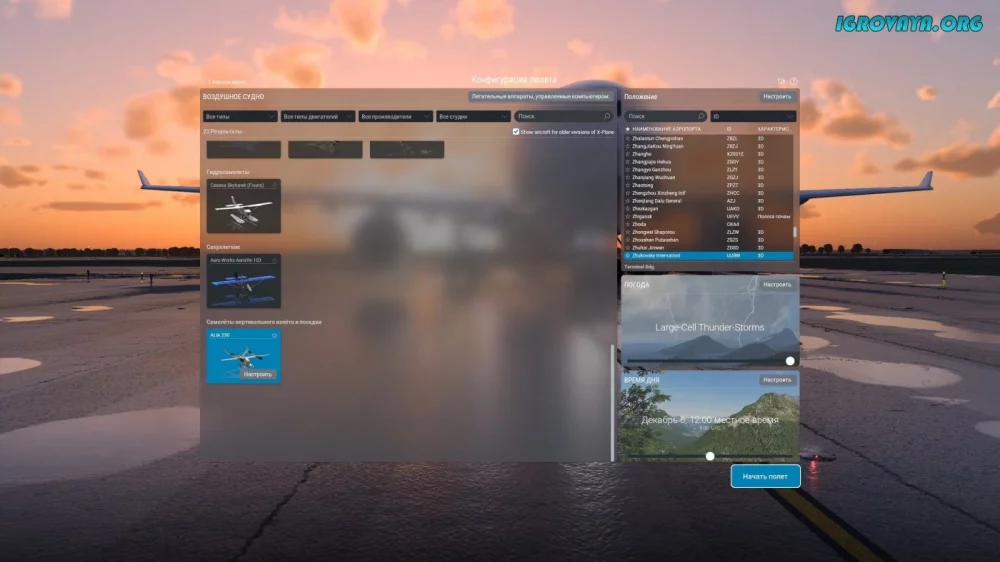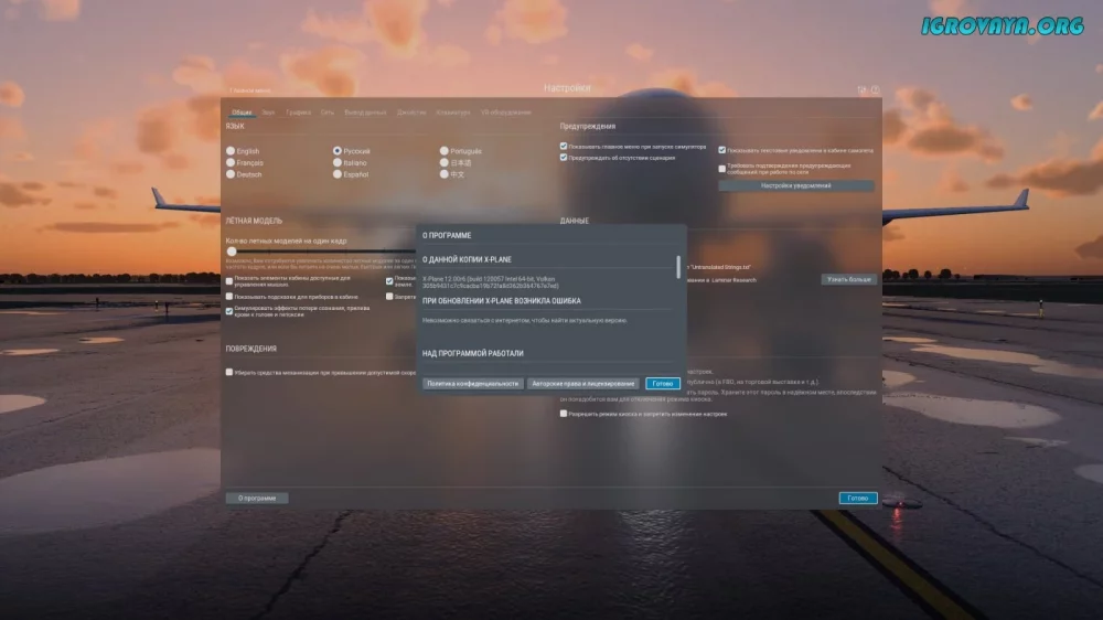 X-Plane 12 был разработан как тренажер для подготовки пилотов, поэтому в игре присутствует множество профессиональных терминов и формулировок. Для лучшего восприятия рекомендуем скачать игру на русском языке и изучить основы управления перед первым полетом.
