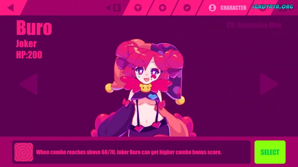 У вас есть три красивые героини, каждая из которых имеет свою коллекцию костюмов, бонусы и приемы. Три девушки, множество музыкальных треков, зажигательная музыка и увлекательный геймплей - здесь точно не придется скучать.