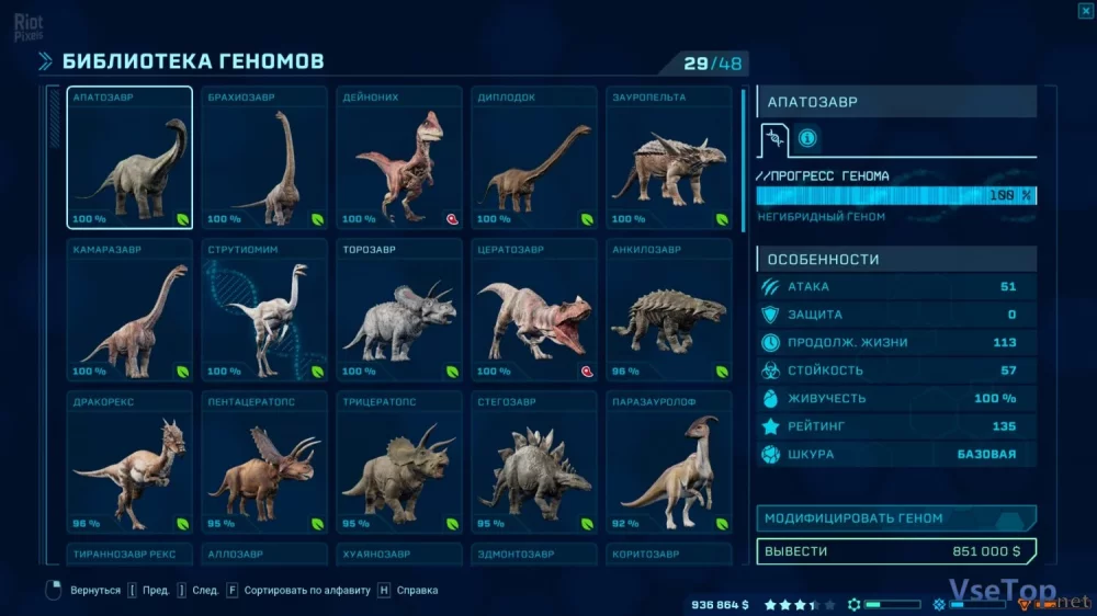 После этого наступает время для создания динозавров – увлекательный процесс, который захватит вас с первых минут. Вы сможете использовать известные ДНК пород динозавров, а также проводить исследования и создавать собственные уникальные виды. Отслеживайте их поведение, характеристики и сочетаемость, чтобы обеспечить гармоничное сосуществование разных видов в вашем парке.