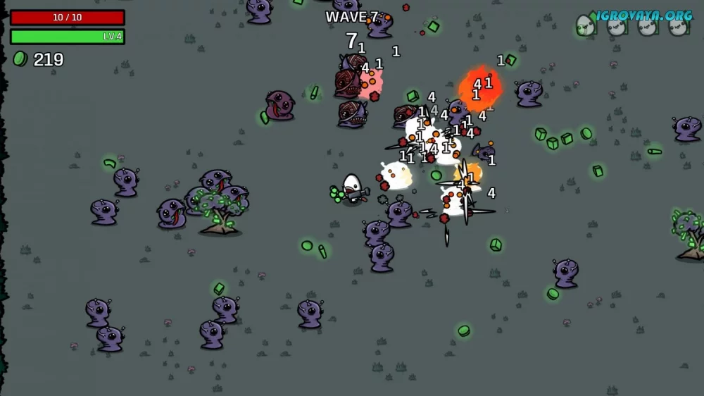 Для любителей адреналина и непредсказуемых сражений Brotato станет отличным выбором. Игра погружает в атмосферу бесконечной битвы за выживание, где каждая схватка приносит новые вызовы и испытания. Присоединяйтесь к Картофелине в ее путешествии по опасным мирам и помогите ей одержать победу над захватчиками!