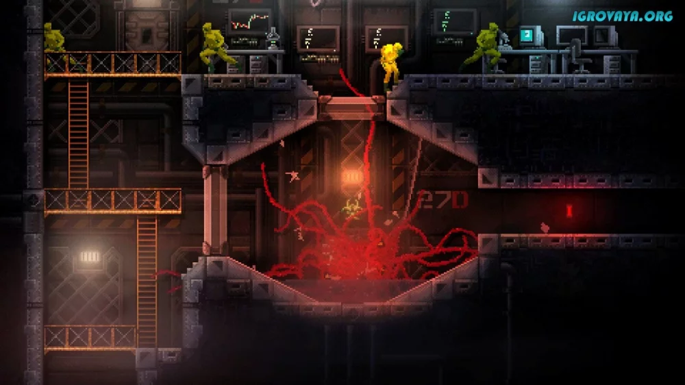 Устрашающая и атмосферная игра Carrion перенесет вас в мир кошмаров, где вы окажетесь в роли монстра, готового на все ради мести и свободы. Проведите кровавую черту сквозь лабиринты и зловещие коридоры лаборатории, показывая всем вашу силу и жестокость.