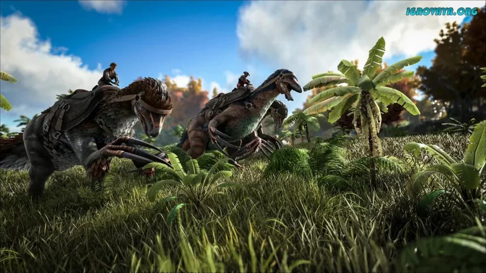 Играя в этот увлекательный проект, вы сможете удивиться разнообразию животных, которые населяют этот остров. Приручив их, вы сможете использовать в качестве верных спутников и помощников в исследовании окружающего мира. Путешествуйте верхом на динозаврах, открывайте новые уголки острова и повстречайте самые разные существа, которые поразят вас своими возможностями.