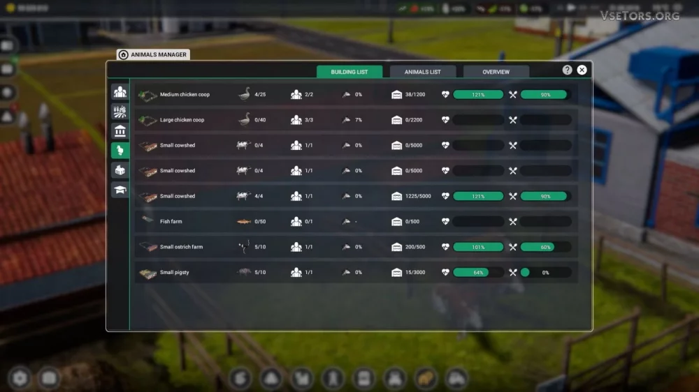 Помимо растениеводства, игра предлагает возможность заниматься животноводством. Разводите крупный и мелкий рогатый скот, птиц и даже пчеловодство. Развивайте свое хозяйство в разных направлениях и создавайте уникальное сельскохозяйственное предприятие.