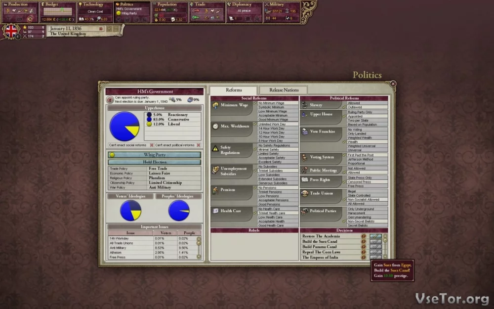 - Глубокое политическое моделирование, где каждое ваше решение будет иметь последствия на внутреннюю и внешнюю политику государства.