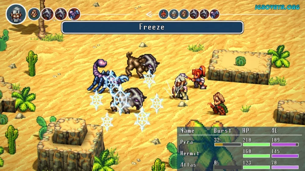 - Пошаговая боевая система, наполненная разнообразными противниками и их уникальными атаками;
