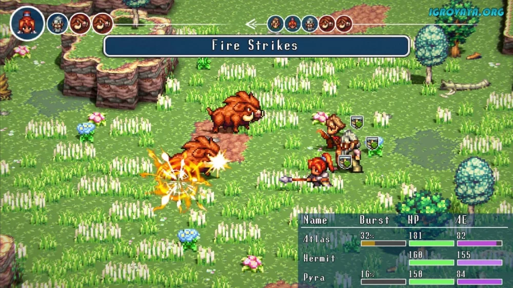 - Возможность изучать слабые стороны врагов, улучшать свой отряд и распределять очки навыков по характеристикам.