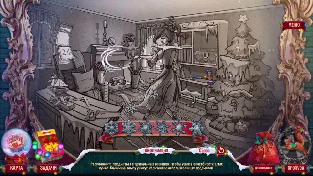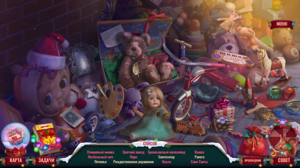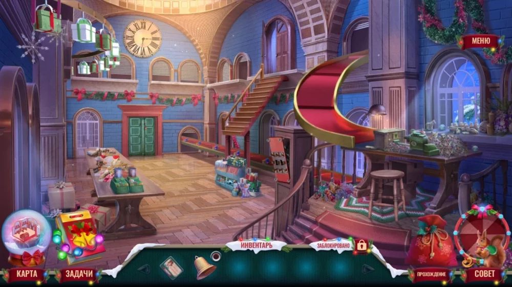 - Решайте сложные головоломки и ищите скрытые предметы, чтобы спасти Рождество.