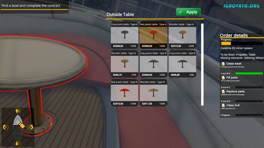 - Продавайте восстановленные яхты на аукционах и устанавливайте высокие цены.